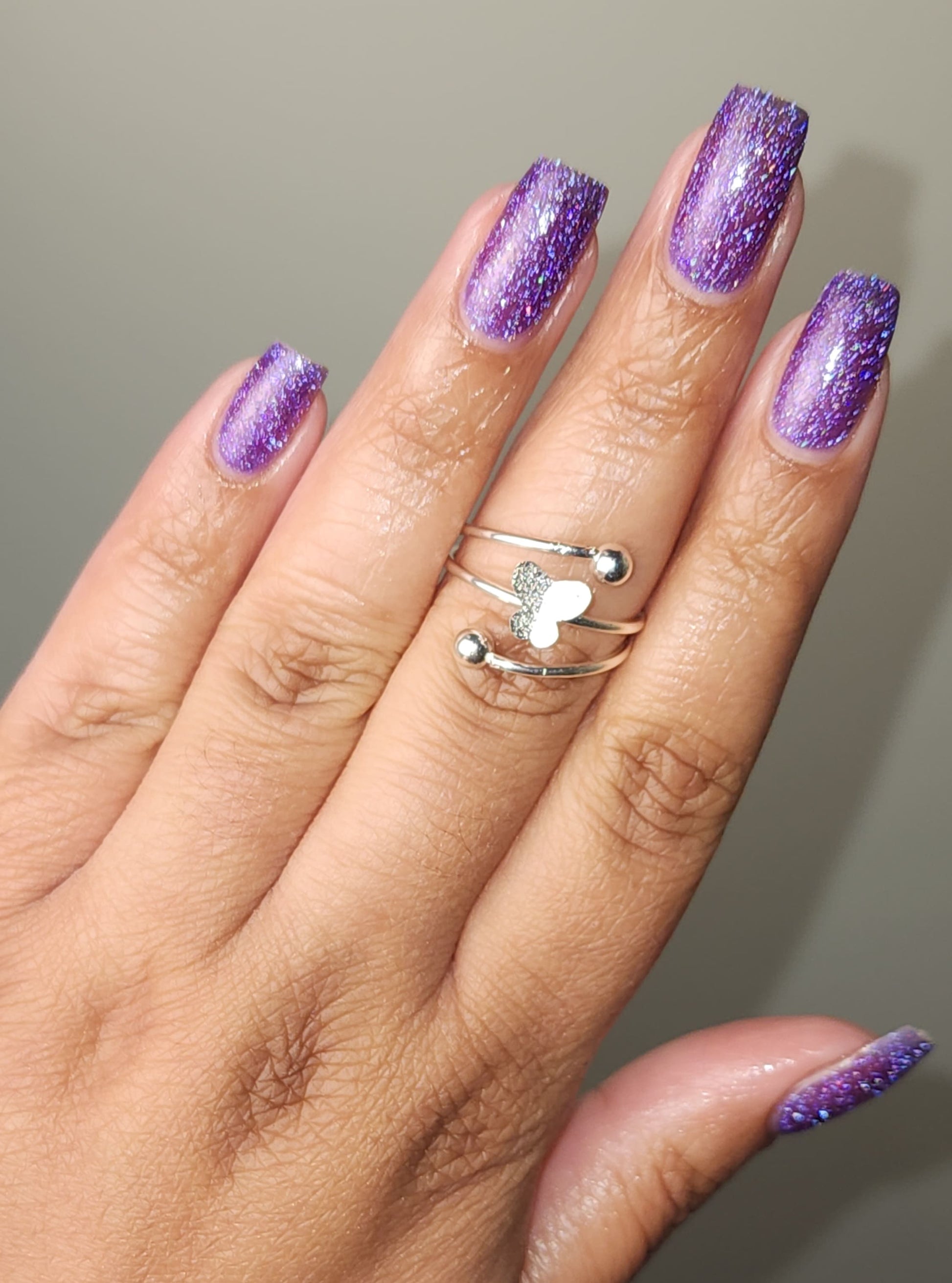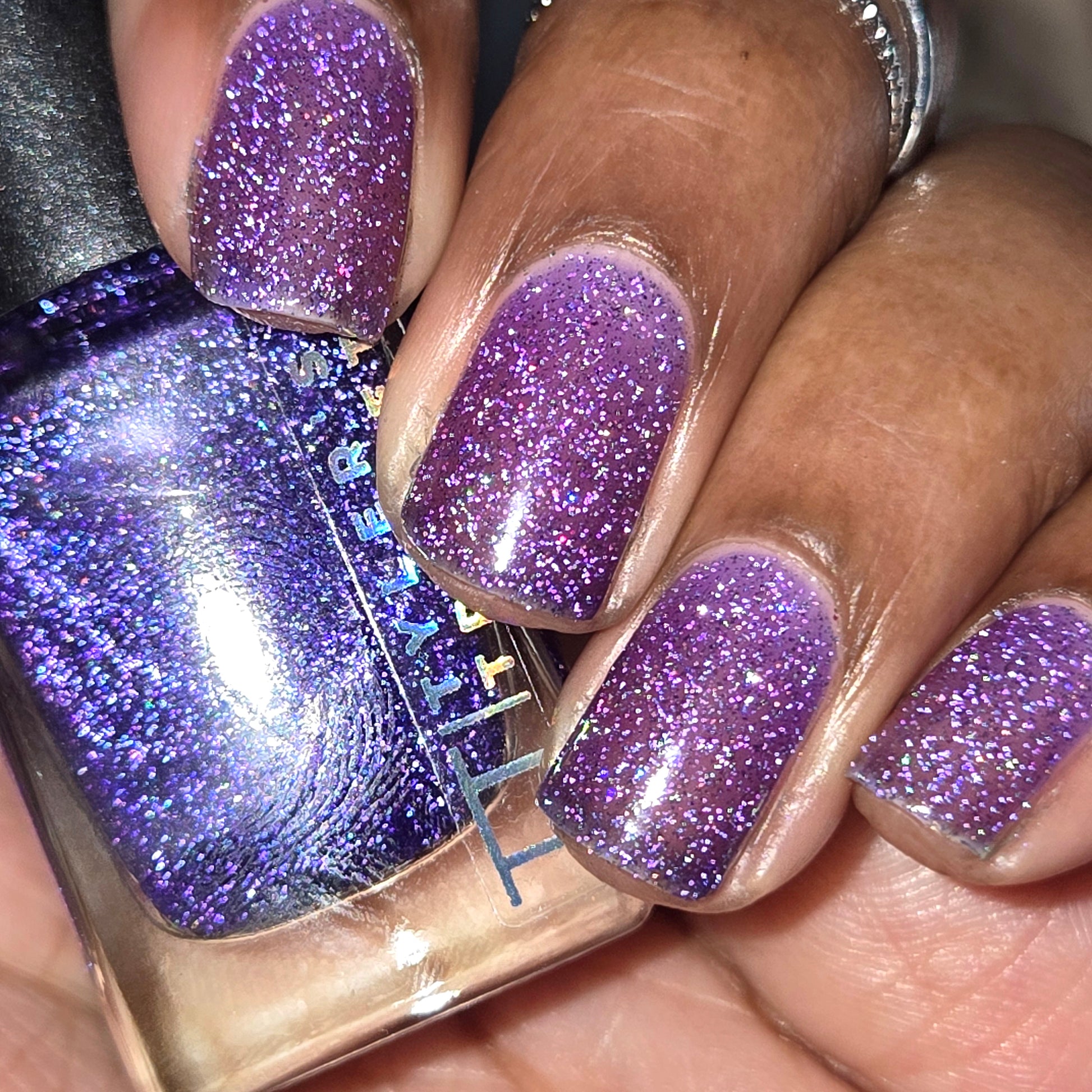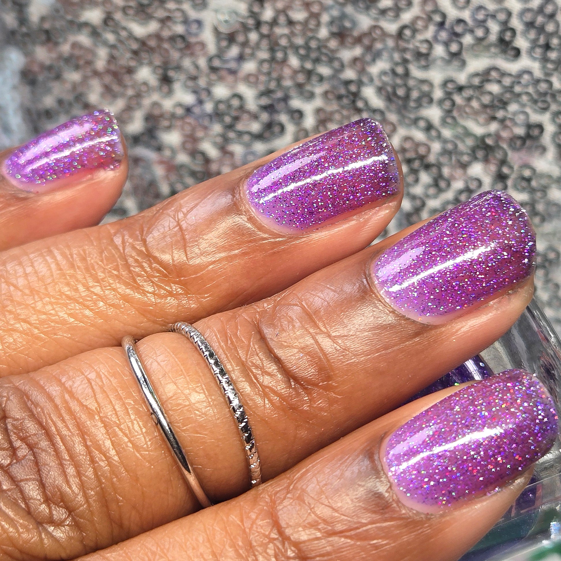 Inspired by the translucent atomic purple GameBoy color! A light purple jelly with pink/purple aurora shimmer, and purple scattered holo and reflective glitters.