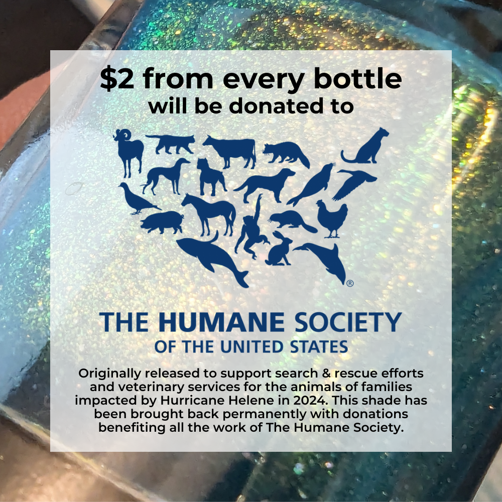 Originally released to support search & rescue efforts and veterinary services for the animals of families impacted by Hurricane Helene in 2024. This shade has been brought back with $2 from every bottle sold continuing to support all the work of The Humane Society.