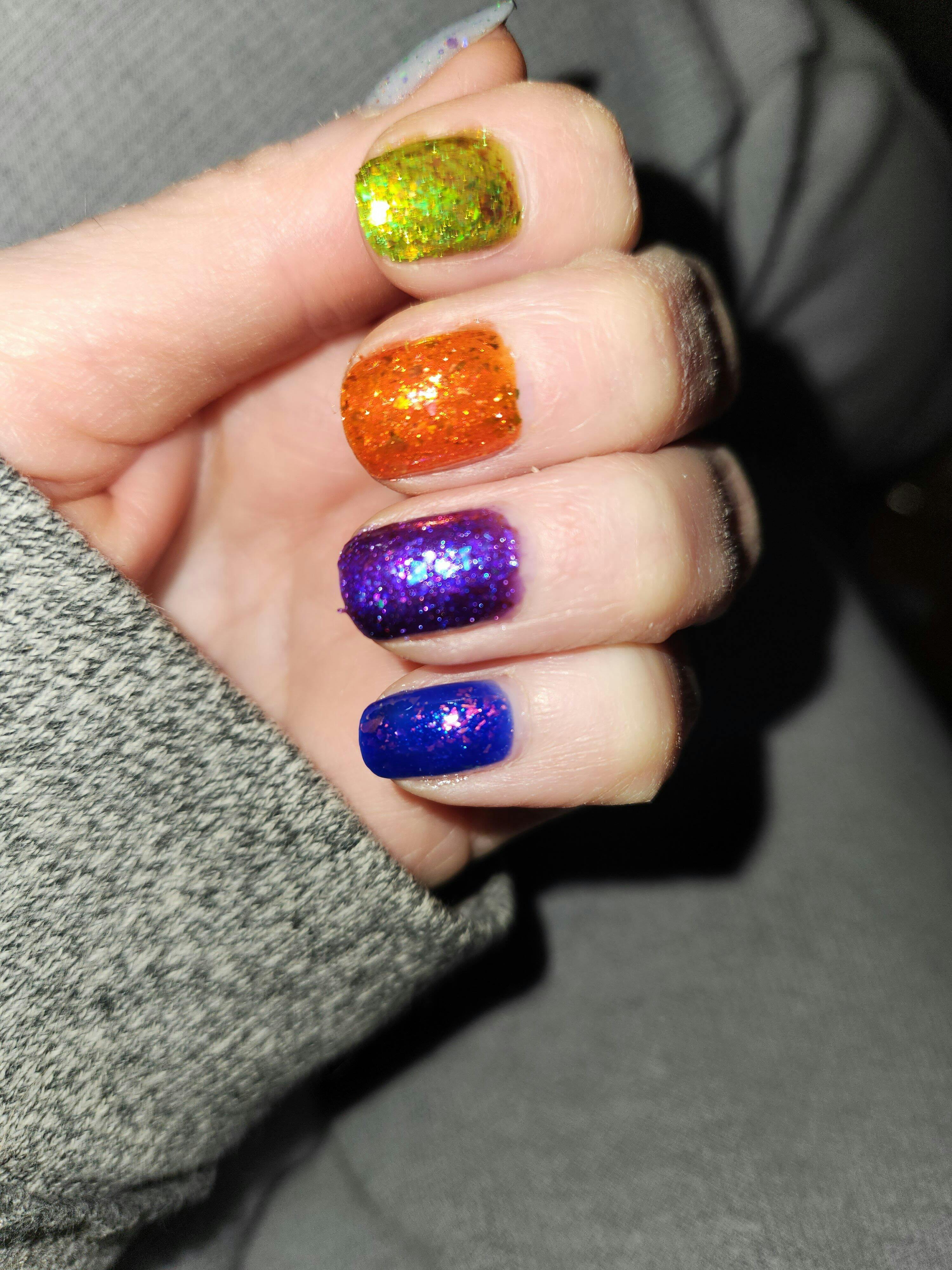 Don't let this one pass you by! I wore it in a Halloween skittle, and I kept staring at it! The group did fantastic putting this one together. The picture does not do it justice! The depth and squisiness was great. I think this may be worn as a single mani or maybe with a single accent color. Probably Winter. Oh, it's the pinky!